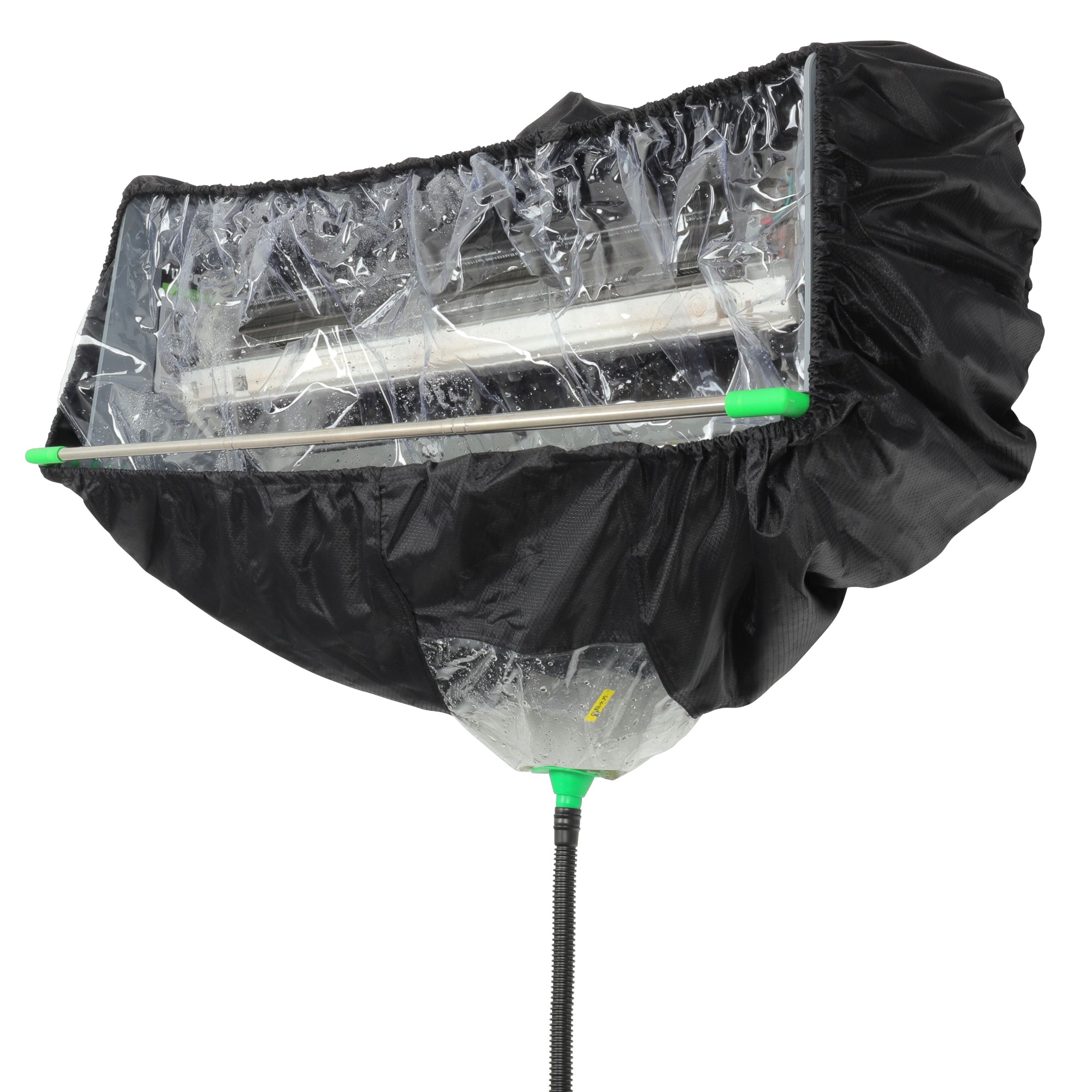 La protezione frontale realizzata in materiale trasparente di elevata qualità garantisce una perfetta visibilità durante l'operazione di pulizia dell'evaporatore, prevenendo nel contempo qualsiasi schizzo o fuoriuscita di liquido pulitore