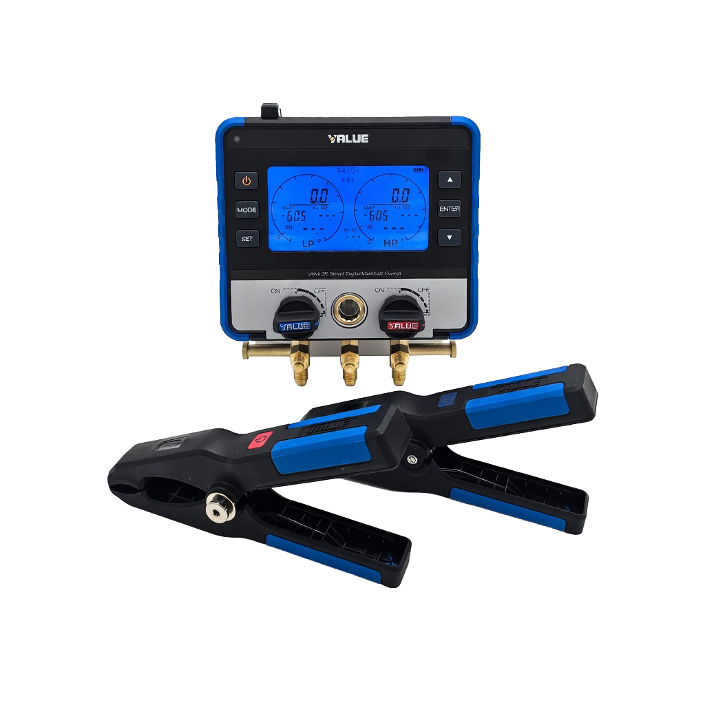 Il manometro digitale VALUE si collega facilmente all’app Hi VALUE tramite Bluetooth e funziona in abbinamento con le pinze di temperatura e i manometri micron.