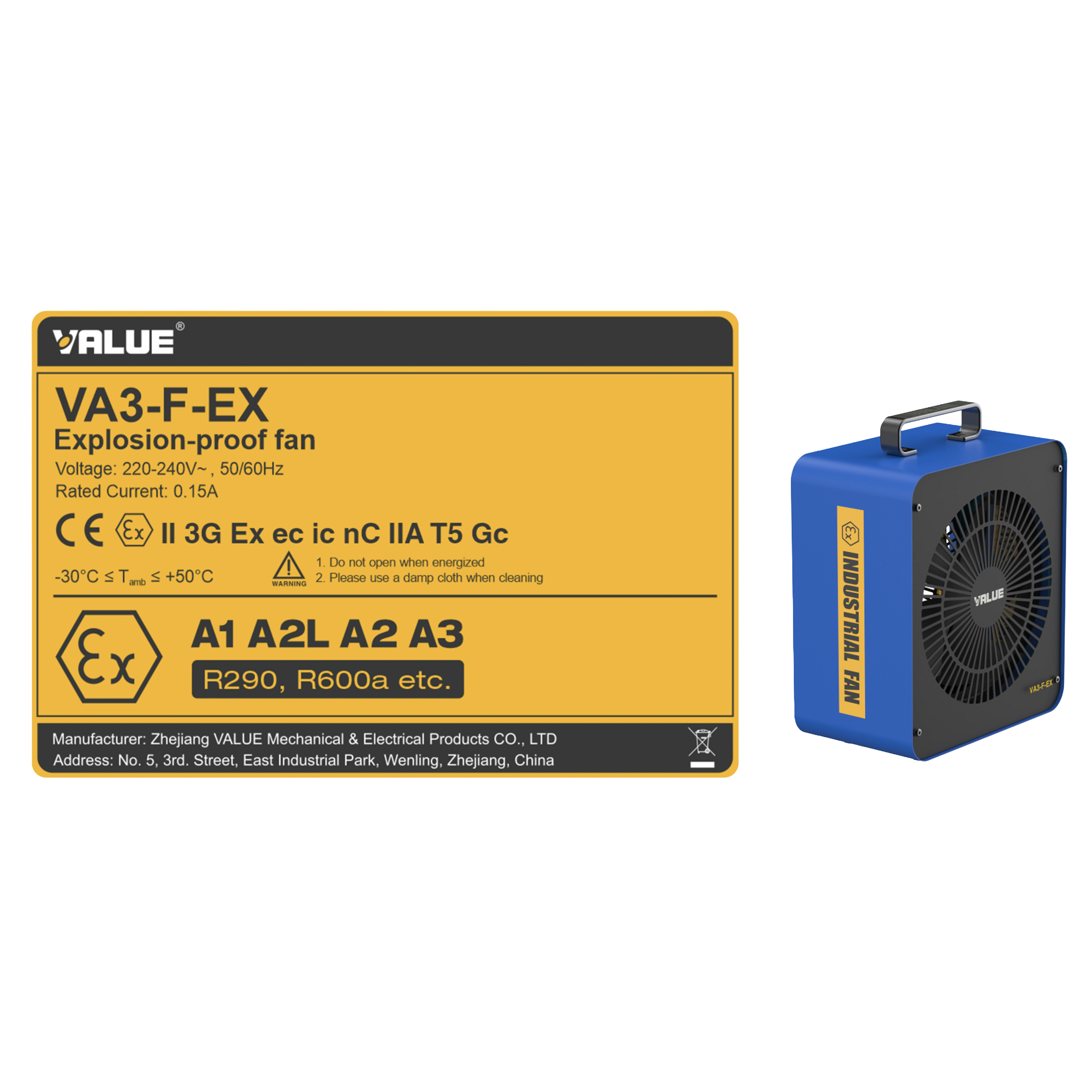 VALUE Ventilatore ATEX VA3-F-EX per Ventilazione Ambiente Durante il Recupero di Gas Refrigeranti Infiammabili R290 e R600a