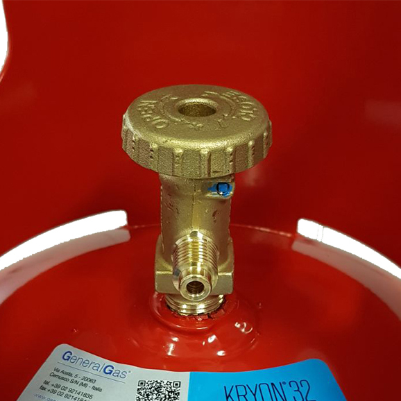 Valvola gas refrigeranti A2L monofase (solo gas) uscita singola con volantino, attacco bombole 17E Uscita 1/2" ACME sinistro, con valvola di sicurezza 42Bar